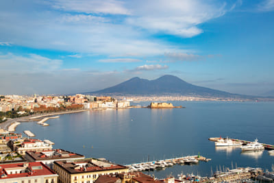 Arte e bellezza si fondono in un incantevole panorama che lascia senza fiato, quando il Vesuvio si specchia nelle acque del golfo.
